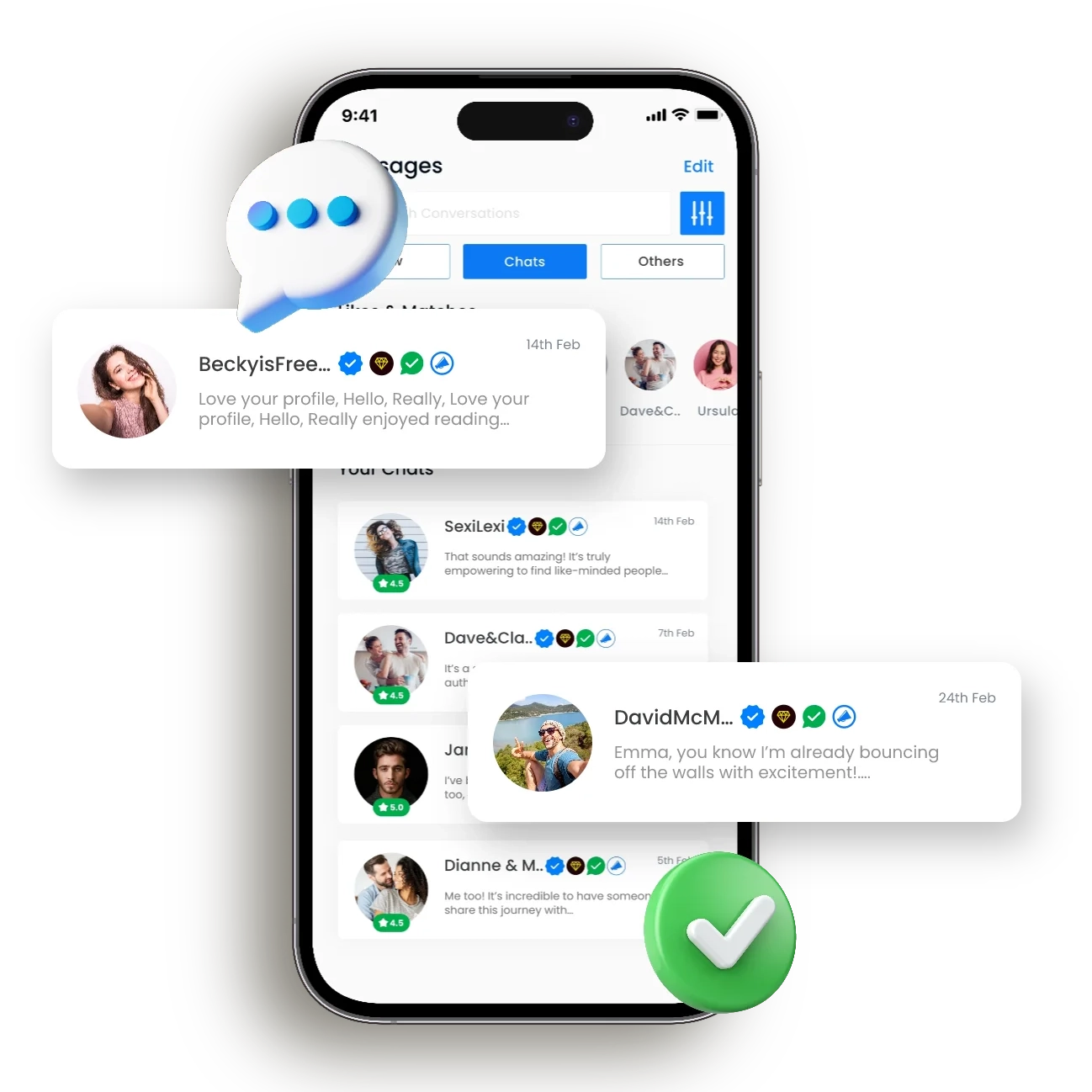 If you verify your profile you will enjoy significantly higher engagement and match requests, thanks to the verified badge displayed on your profile. In fact, verified members experience an astounding 15 times more interaction from others. This feature not only signals your commitment but also helps us and the community combat catfishing, creating a safer environment for all.